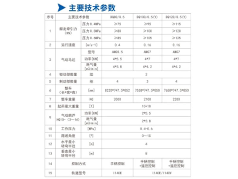 DQ80/0.5、DQ100/0.5(Y)、DQ120/0.5(Y)型氣動(dòng)單軌吊車